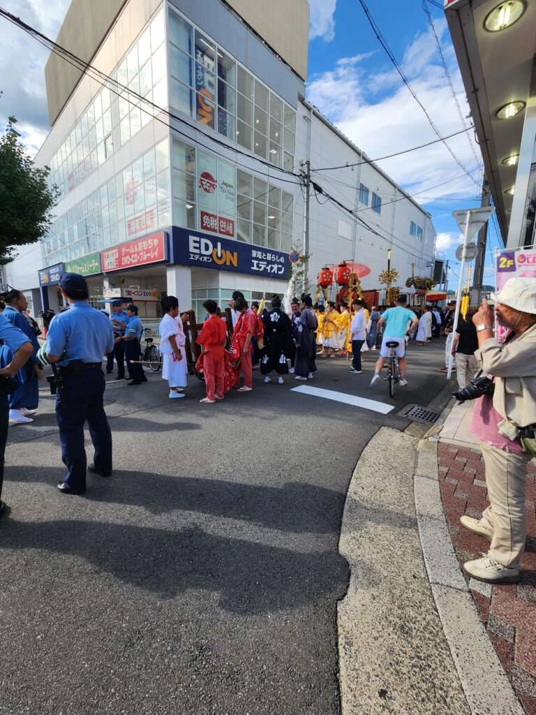 10月1日の神幸祭では、北野天満宮から御旅所へ、西大路通りや丸太町通りを巡りながら進み、10月4日の還幸祭では御旅所から三条通まで巡り、七本松通を北上して北野天満宮まで還りました。