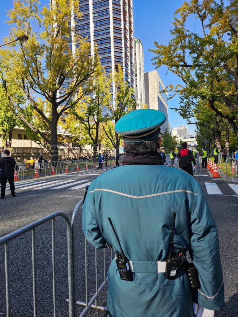 朝から多くの方がお越しになられ、手荷物検査の他、観覧へリアへの誘導、車両の誘導などを行いました。
