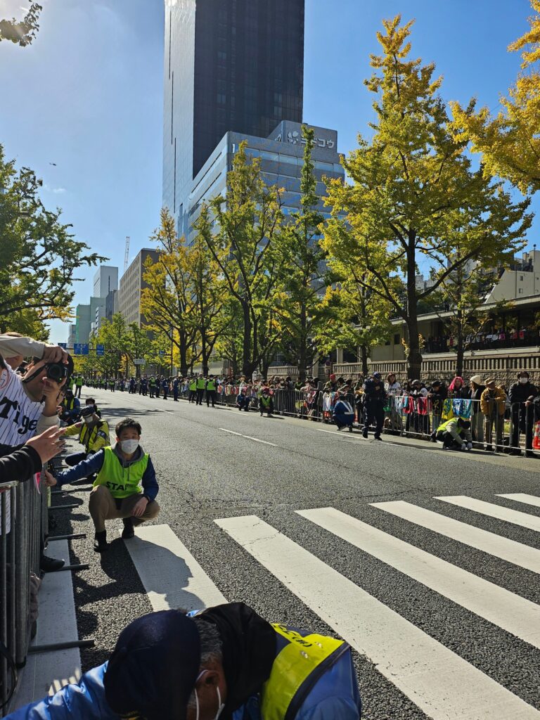 選手の方々は沿道に集まった多くのファンに手を振り、ファンも手を振り返しながら六甲おろしを歌い、大いに盛り上がっていました。