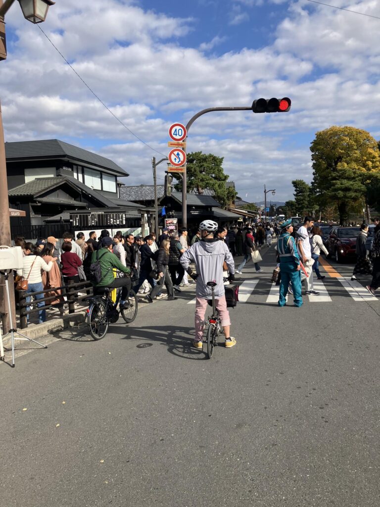 11月22日~24日、11月29日~30日の土日祝日は、混雑が予想される渡月橋や嵯峨街道も一方通行となりました。