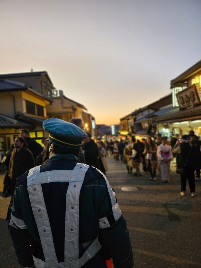 期間中、清水坂での動線確保や、諸堂での雑踏事故防止のための警備業務に当たりました。